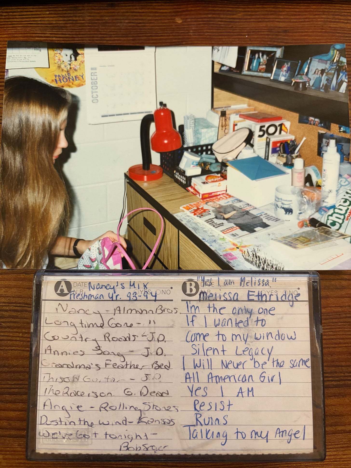 My Nancy was beautiful, smart, funny, and had great taste in music, introducing me to country and folk singers like John Denver, Johnny Cash, and her favorite, the Indigo Girls, which soon became mine. We also both loved the 1993 Melissa Etheridge album, Yes I Am, our favorite track was, of course, “Come to My Window,” which we’d belt out while walking through campus on late night walks home. Nancy had the better voice, sweet and raspy, and I loved listening to her.